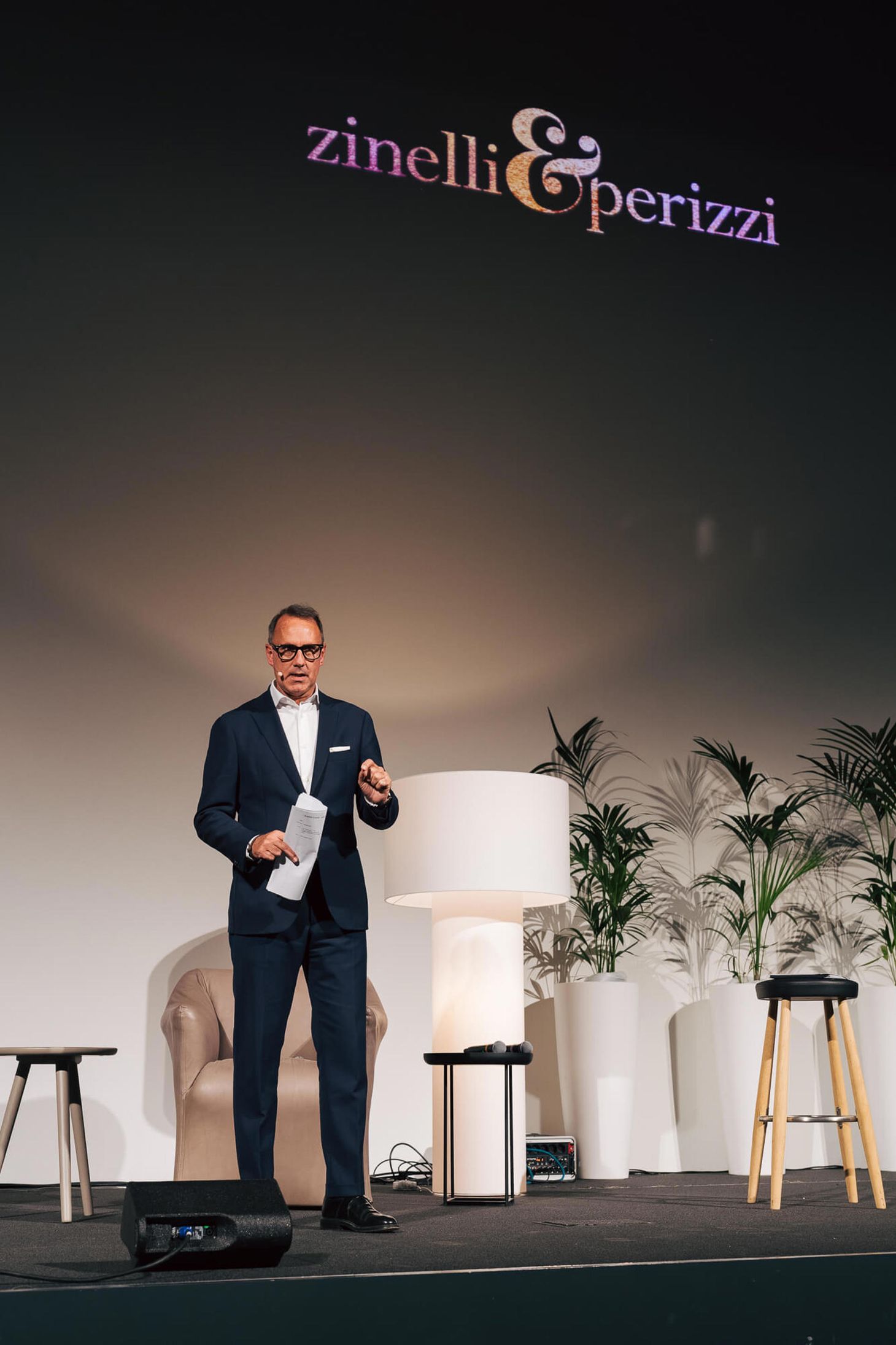 Sul palco sono poi saliti Oliviero Giotto, storico interiore designer Zinelli&Perizzi e Giorgio Capitanio, Maestro Tappezziere Zinelli Perizzi: due grandi personaggi che hanno dialogato con la nuova generazione aziendale che ha tratto ispirazione dalla loro passione.